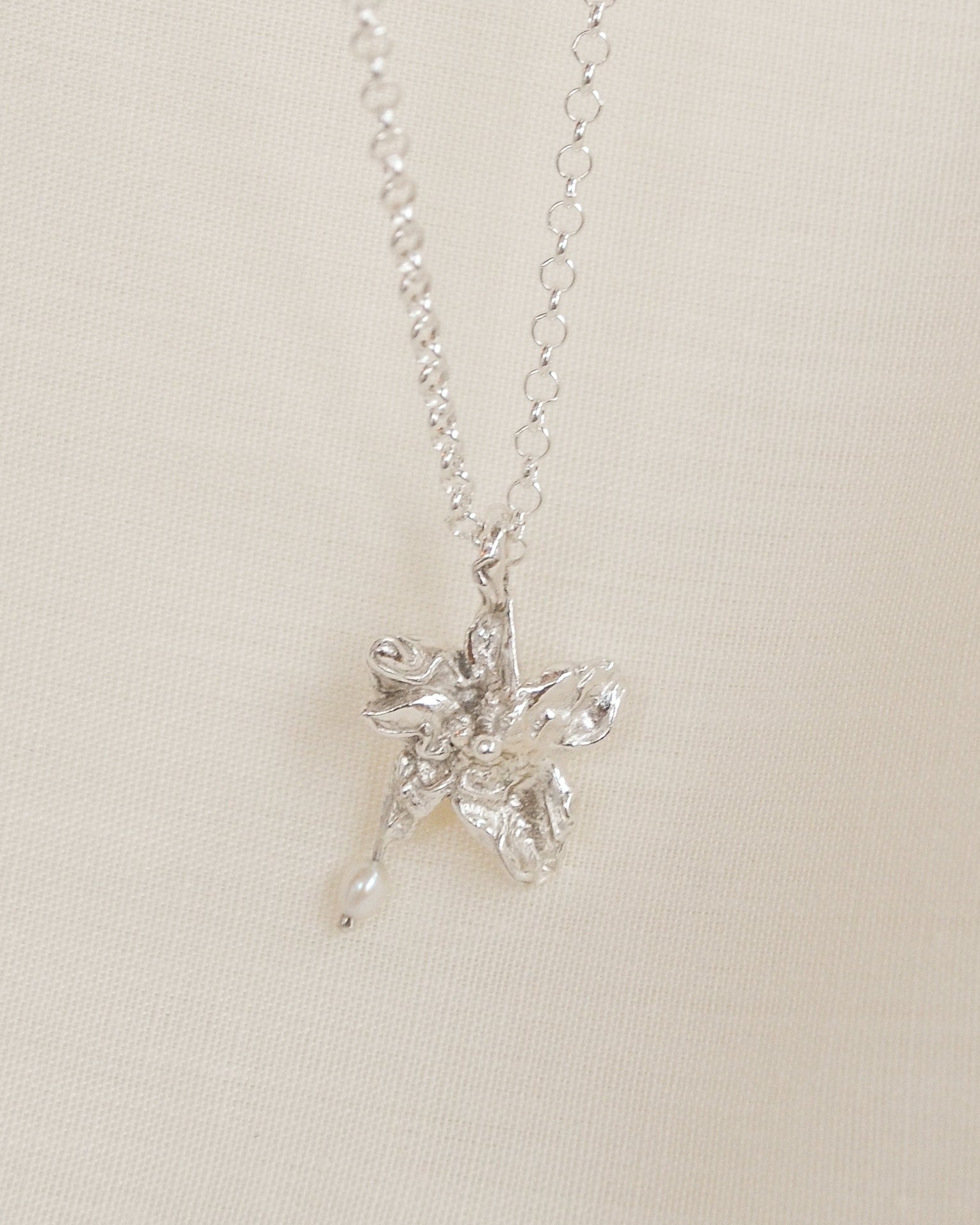A custom necklace and charm for Michelle, whose favorite flower is a lily.