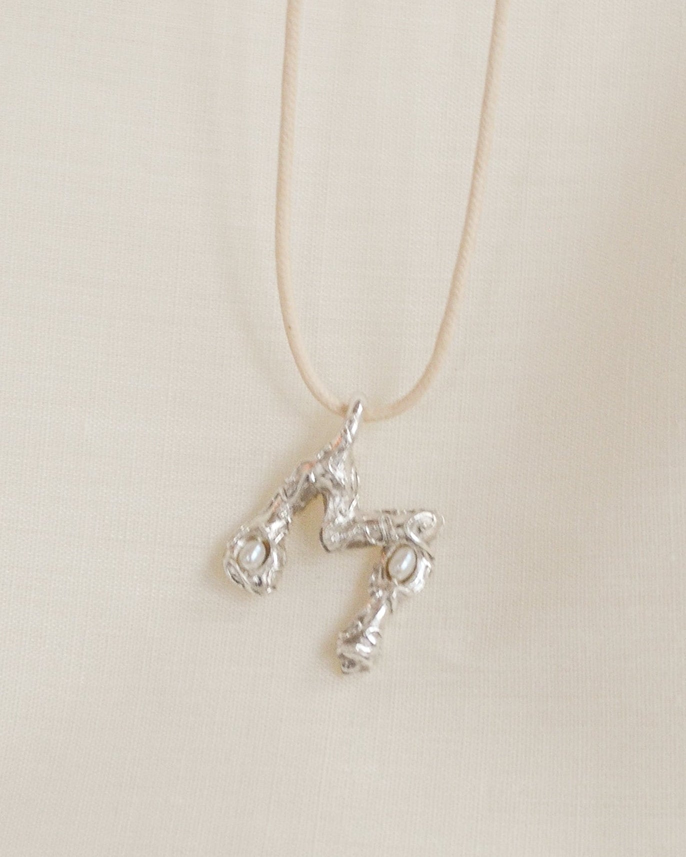 A simple statement necklace for Michelle, with her initial and two baby pearls